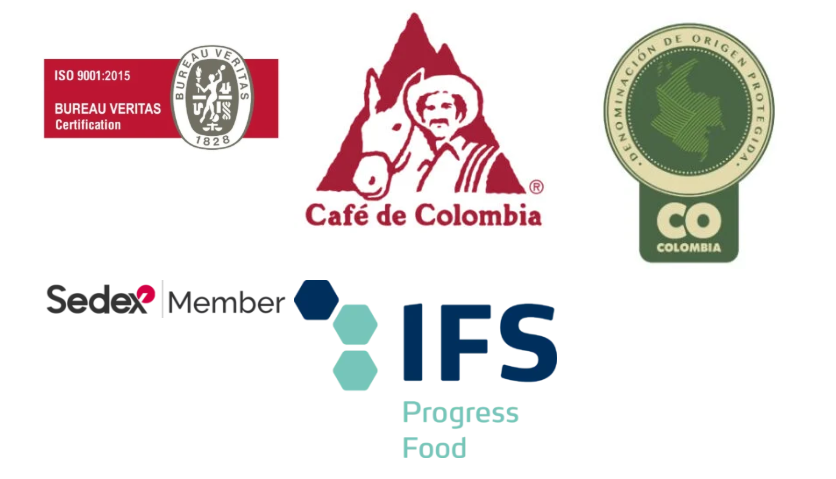 Nuestros cafés son procesados bajo altos estándares de calidad, contamos con una amplia experiencia en el mercado Nacional e Internacional, avalados con los sellos de Café de Colombia y Cafecert en la línea de cafés excelso premium.